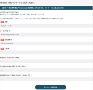 登録すると簡単な挨拶の後にアンケートを求められるわ。