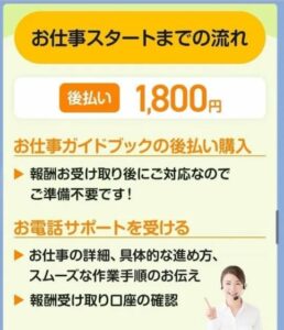 ガイドブックが1,800円ってなってるけど、本当に稼げるならこのガイドブック代を支払っても文句なんて出ないじゃない?稼げない人が多いから悪いウワサが絶えないんだと思うのよね~。