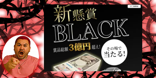 新懸賞BLACKは、「甘い言葉でアンタの理性を奪い、1,500円から数百万まで毟り取る邪悪な装置」よ!