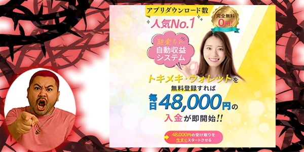 トキメキウォレットは完全に無料で始められて、登録するだけで毎日48,000円が自動で入ってくる自動収益システムなんだけど…もう胡散臭いでしょ?