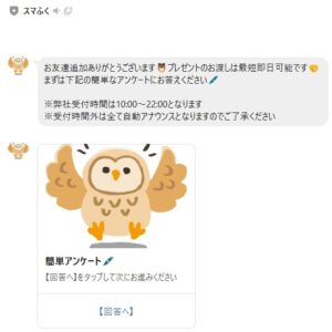 え、アンケートって名前と電話番号だけ?ただの情報収集じゃない。でもまぁ検証する為に登録しますか。